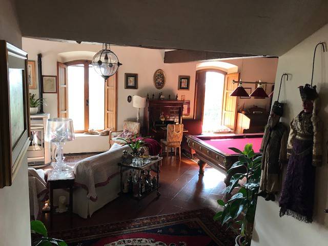 pranzo di rappresentanza con camino, bagno, studio; al piano superiore collegato con scala interna, troviamo un disimpegno, salotto con camino, 4 camere da letto e